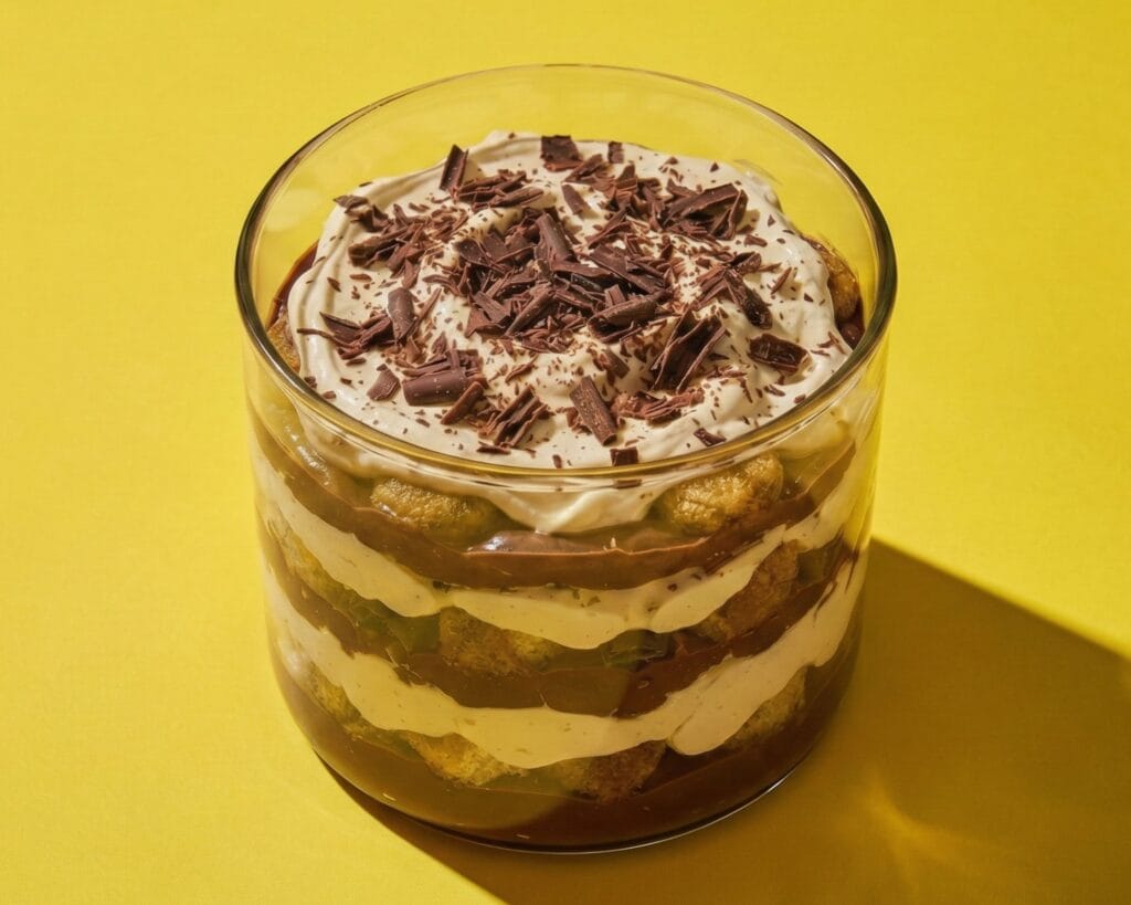 Tiramisu des biscuits fondants, de crème mascarpone et des copeaux de chocolat